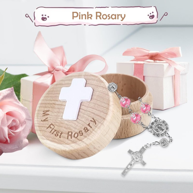 - Exquisite decoration: Our pink rosary have exquisite appearance decoration, there is a three-dimensional white cross on the lid, and it is engraved with the words' My First Rosary ', enhanced overall artistic sense and ornamental value