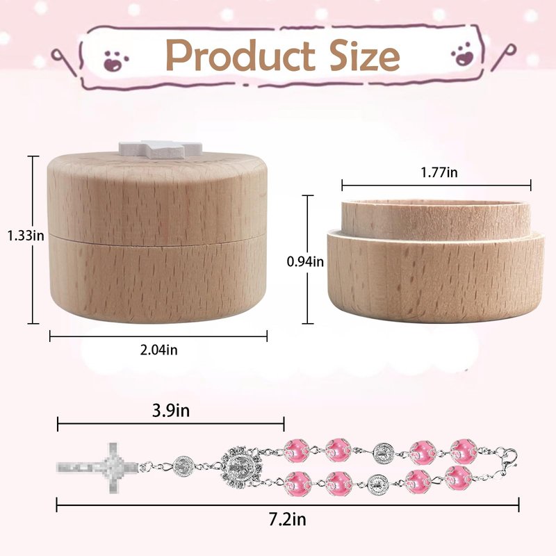 - About baby baptism set: Rosary beads catholic gift comes with a delicate wooden box, its size is 2*1.8*1.4inch, The length of the rosary is about 7.5inch. This rosary set is a gift that will be treasured and used for all of her life