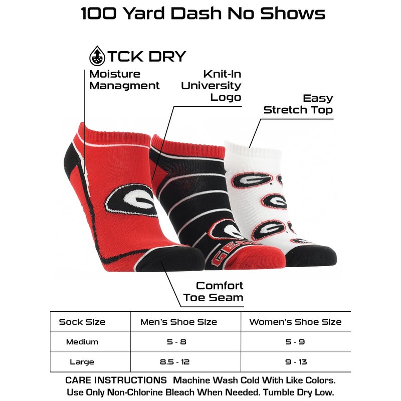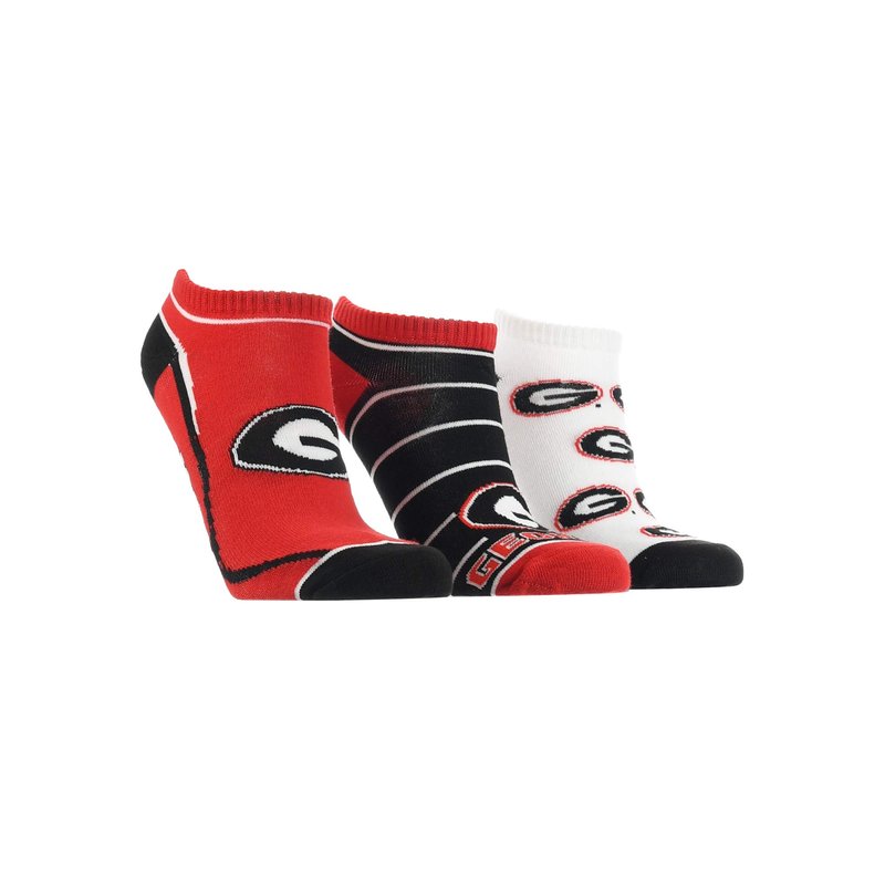 TCK Georgia Bulldogs No Show Socks Full Field 3 Pack (Black/Red/White, Medium)