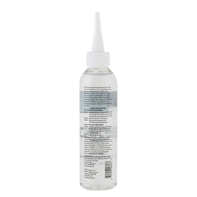 TCM Mancode 101 Peppermint & Tea Tree Oil Skin & Scalp Tonic is a clarifying scalp treatment that purifies and detoxifies to help remove particles and excess oils that contribute to scalp irritation. Infused with nourishing active ingredients like Peppermint, Menthol, and Tea Tree Oils to calm, soothe and stimulate the scalp while providing instant itch relief.