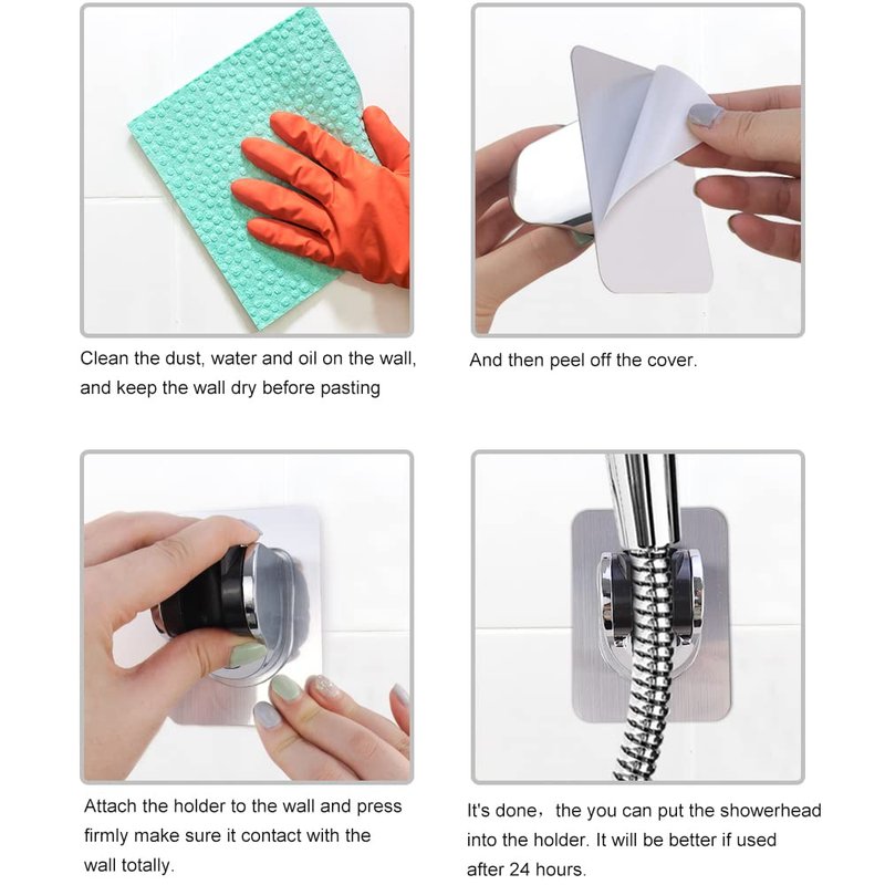 - Easy to Install: You can install the hand shower holder within seconds. First, you need to decide the place you want to install. Second, make the wall surface clean, no water left. And then peel off the back cover of the shower holder, press it tightly to remove air so it will have full contact with the wall surface, which helps it fix more firmly. Please wait for 24 hours before using to ensure its stability and reliability.