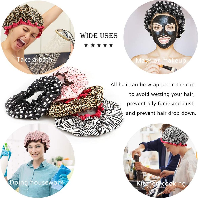 - DOUBLE LAYER WATERPROOF - Contains two layers, including a polyester outer layer and an EVA inner layer, effectively keep your hair from getting wet in shower. Upgrade your shower experience.