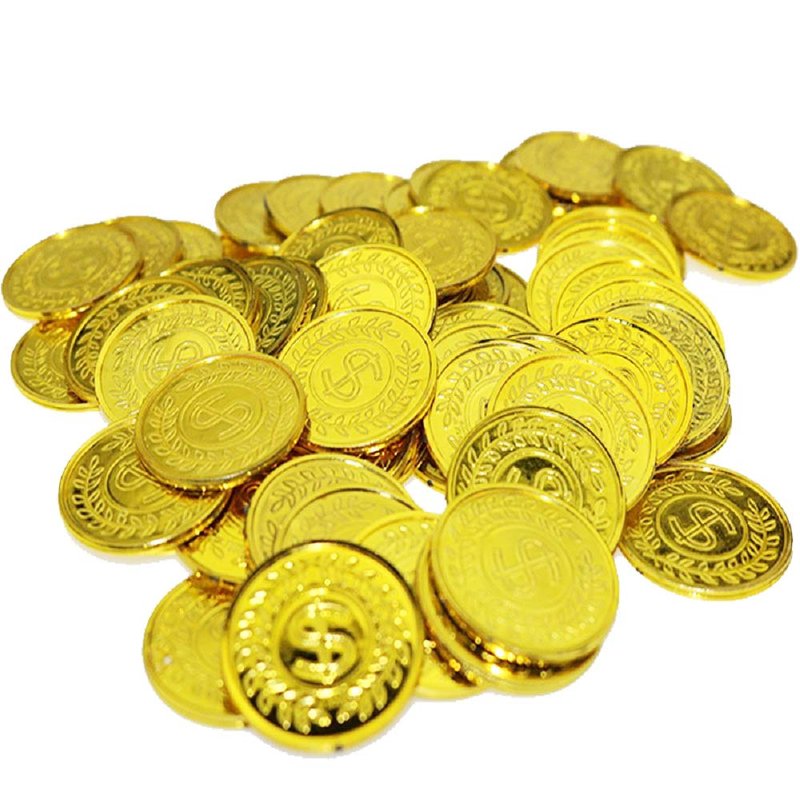 - WHAT YOU GET – Pack of 100 Plastic Gold Coins. Coins measures 1.38". gold color. Packed in transparent polybag. For ages 3 and up.