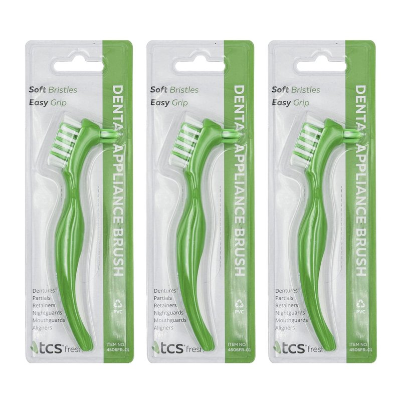 TCS Dental Appliance Cleaning Brush - Denture Brush for Adults, Soft Denture Cleaner Brush with Ergonomic Handle (Pack of 3)