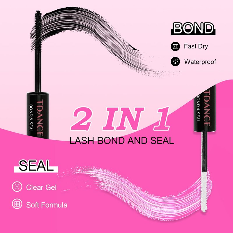 - 🎀【Lasting Hold and Easy to Remove】TDANCE bond & seal is made of professional waterproof and sweat-resistant material. One brush head is BOND, another is SEAL, 2 in 1 lash glue can meet your demand. Don't worry about your eyelashes falling out at any time. The lash remover Oil-based formula will quickly dissolve lash glue and other oils and stains, leaving no trace behind, fast remove at several minutes.