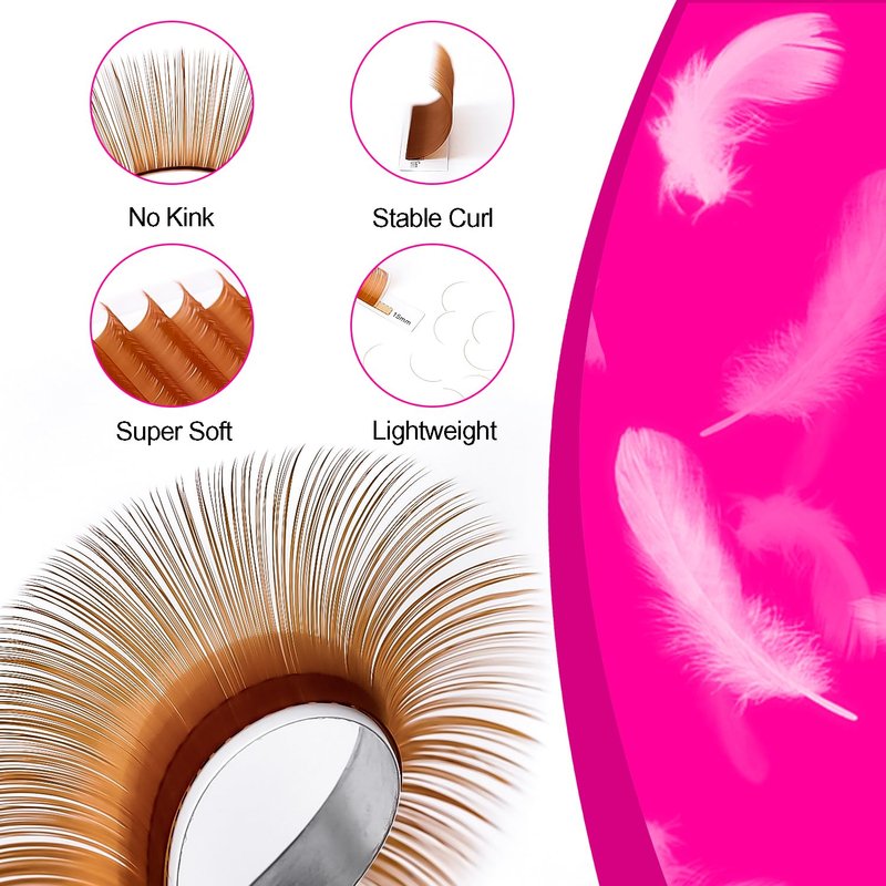 - đăHigh-quality color eyelash extensionsă High-quality PBT material from Korea. So soft as mink. No harm to human skin or eyes. 100% handmade, no cruelty. The eyelash coloring adopts a special dye processing technology, which is bright and long-lasting and will not fade.