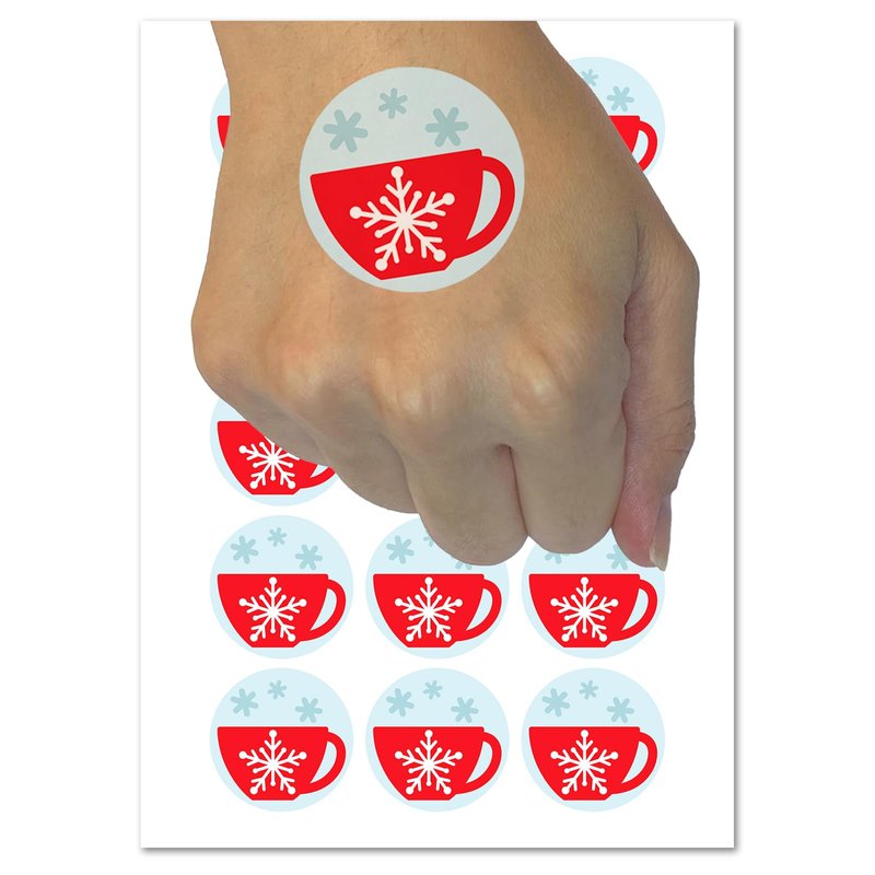 Tea Coffee Cup Snowflake Details Winter Temporary Tattoo Water Resistant Fake Body Art Set Collection - 15 2" Tattoos (1 Sheet)