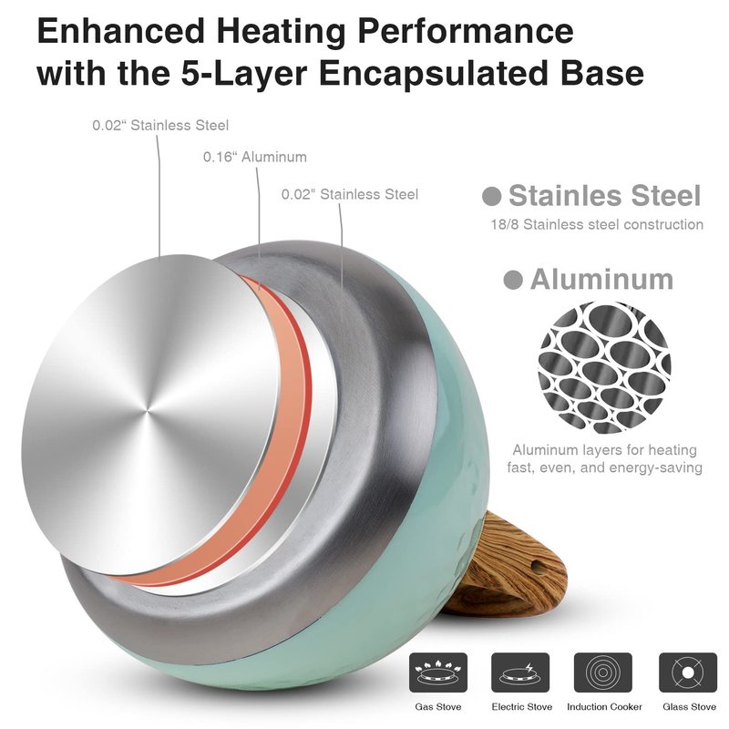 - [ Loud Whistling Sound ] Loud & automatic whistling catch your attention even in a noisy environment. When you focus on your housework, movies, music, or any other things, the teapot will remind you with a whistle after boiling water. To prevent you from forgetting to turn it off and drying the water up. (Tip: Just fill up 80% of the capacity so that the water kettle can whistle when water is boiling.)