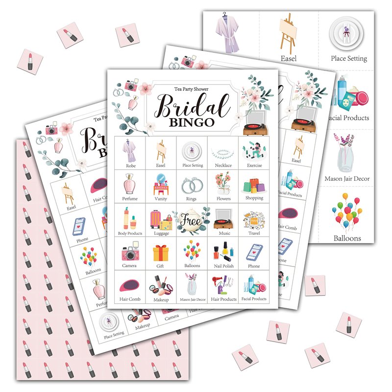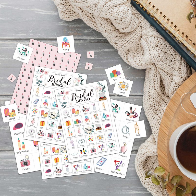 [1]Each game cards measures 5“ x 7”. Each package has 24 player bingo cards & 7 chips & 24 calling cards. [2]Perfect for tea party, tea themed bridal shower party, bachelorette party, wedding and engagement party! Also sutis for bridal shower decorations. [3]The cards are printed by advanced digital color printing machines with vivid colors. [4]There are other styles of bridal shower games in our store, welcome to shop!