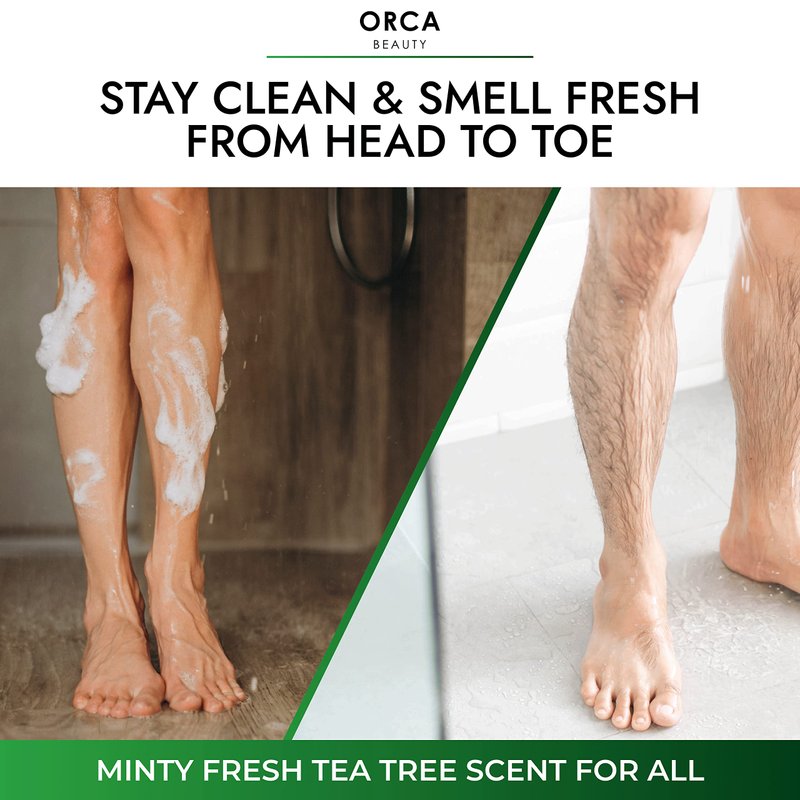 - Combat Body Odor & Itch - Cleanse effectively from head to toe with Orca Beauty tea tree body wash for women and men. This powerful tea tree oil body wash helps eliminate odor and common skin concerns without stripping off moisture. Feel minty fresh and clean after every bath!