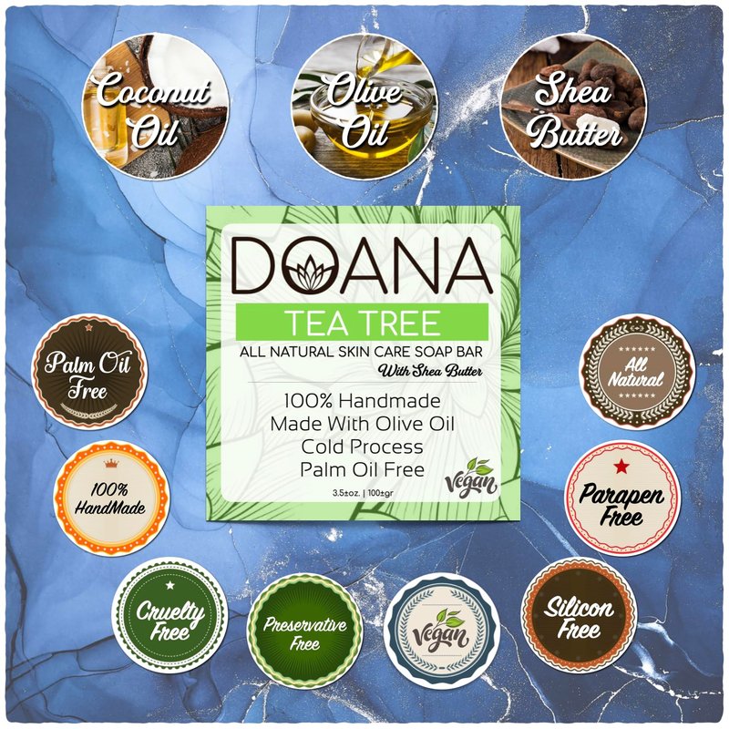 Tea Tree Soap Bar - Now With SHEA BUTTER - Vegan, With Olive Oil and Coconut Oil, Palm Oil Free, Antiseptic, Anti Acne and Anti Pimple, Anti Fungal Effect, Prevents Unwanted Odors