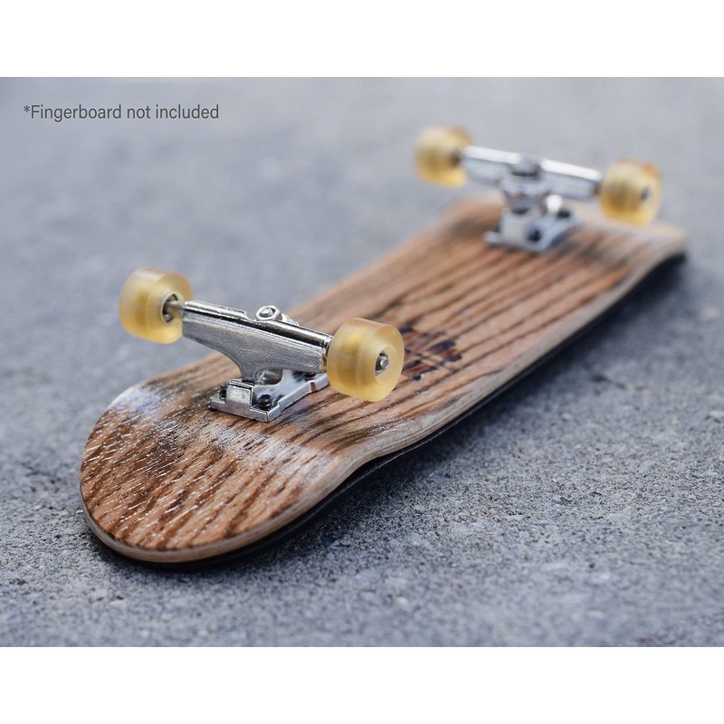 Set of four Apex Series, New Street Style Fingerboard Wheels in "Honey" Colorway. The New Street Style 61D wheels are our softest wheels yet, and are equivalent to 101A hardness. The feel of these wheels are very similar to real skateboard wheels. Measuring 7.7mm in diameter and 4.9mm wide, these wheels are great for easy riding and doing tricks on all kinds of surfaces. These wheels are designed and made in the USA using a premium quality, custom Teak blended urethane. Each wheel is casted and cut in New York. Colors are handmixed and may vary slightly between sets. Many fingerboarders love the squeak sound that urethane wheels make as you powerslide across a surface or do a sharp turn.