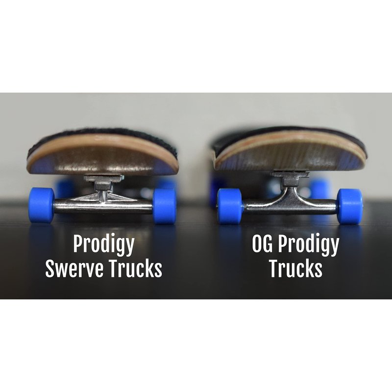 - PROFESSIONAL SHAPE PRODIGY SWERVE TRUCKS || Two professional fingerboard trucks. Teak Tuning Prodigy Swerve trucks feature a professional shape and appearance and feature upgraded Teak components. Hanger has an updated contoured shape, and features a baseplate shape similar to Teak Original Prodigy Trucks. Swerve trucks are shorter and sit closer to riding surfaces
