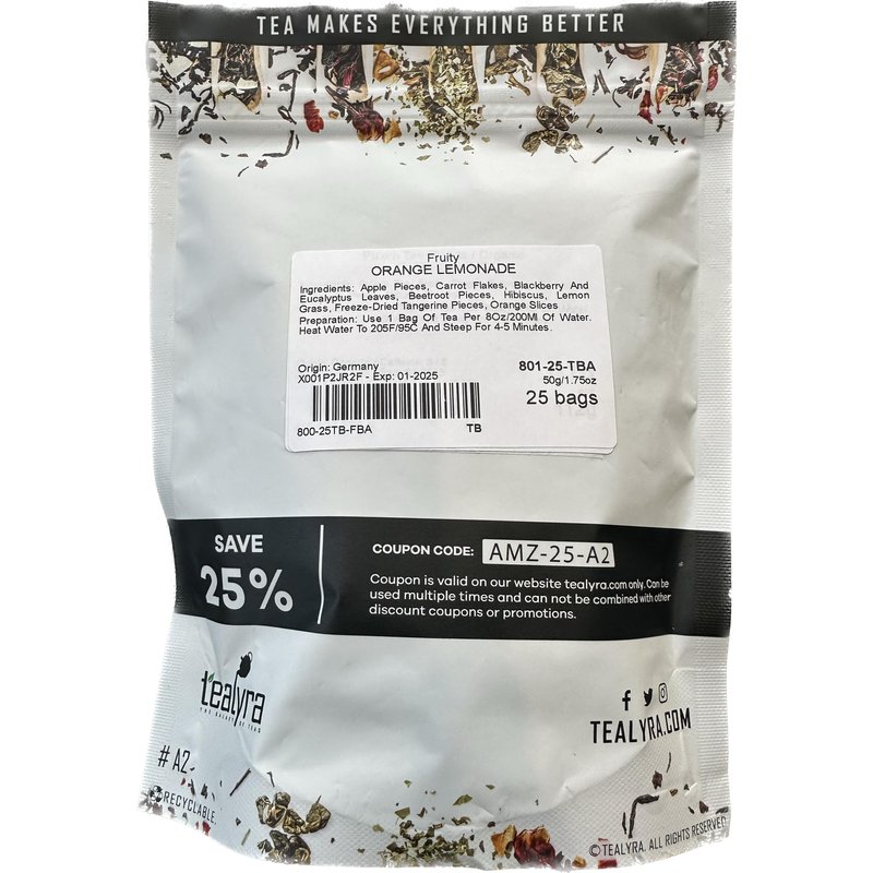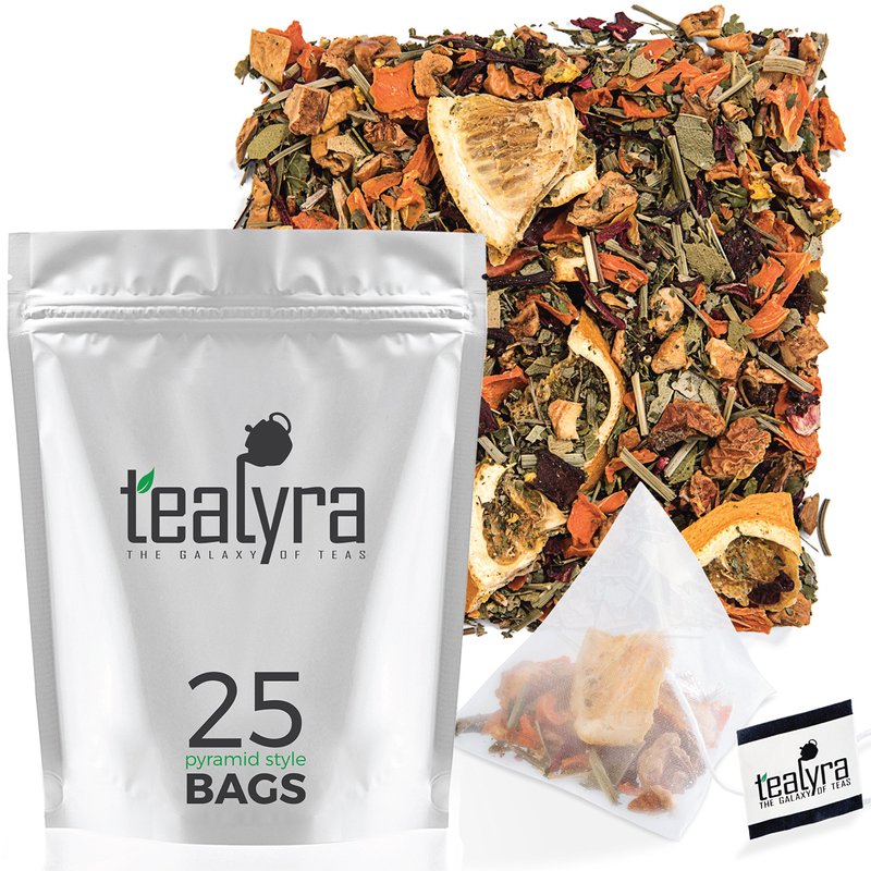 Tealyra - Orange Lemonade - 25 Bags - Hibiscus - Eucalyptus - Lemongrass - Herbal Fruity Loose Leaf Tea - Vitamins Rich - Boost Immune System - Caffeine-Free - Pyramids Style Sachets