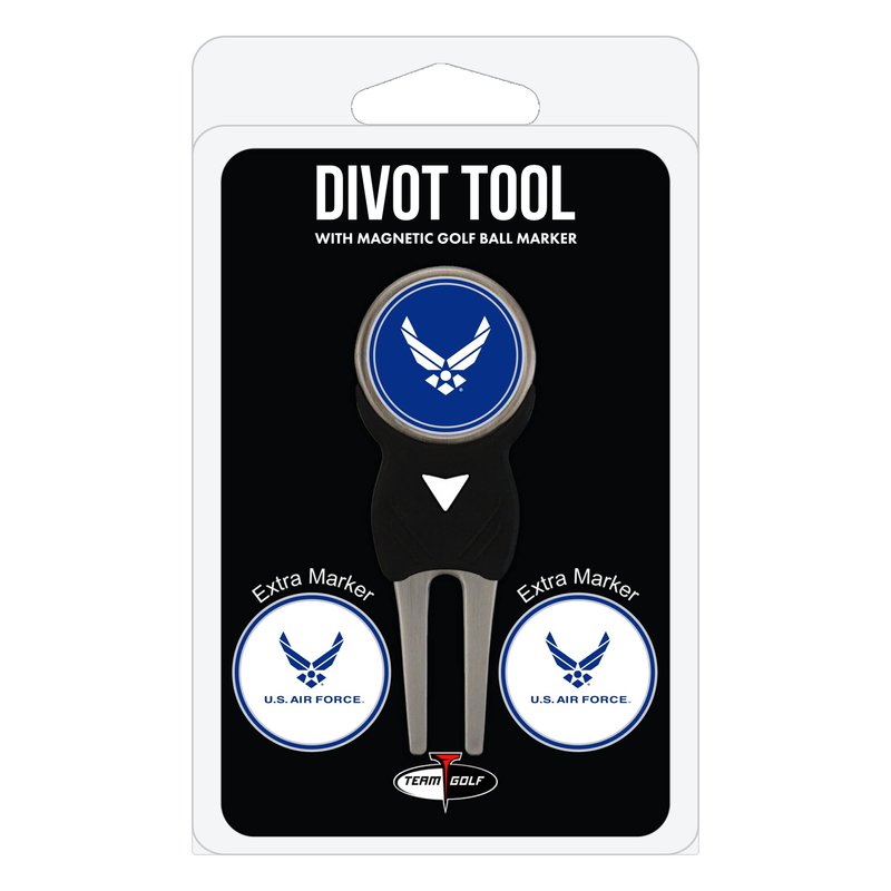 Team Golf Military Air Force Divot Tool Pack with 3 Golf Ball Markers Divot Tool with 3 Golf Ball Markers Pack, Markers are Removable Magnetic Double-Sided Enamel