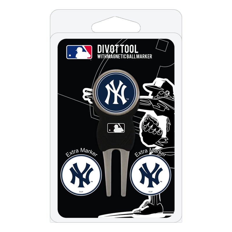 Team Golf MLB New York Yankees Divot Tool Pack With 3 Golf Ball Markers Divot Tool with 3 Golf Ball Markers Pack, Markers are Removable Magnetic Double-Sided Enamel