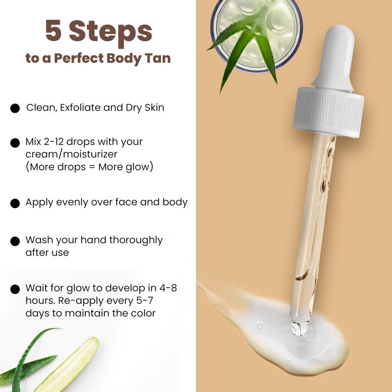 - Vegan Friendly, No Nasties: Enjoy a beautiful tan with these tanning drops, crafted from natural, vegan ingredients like aloe vera and avocado oil. Say goodbye to unpleasant odors and orange tones for a flawless, natural look.