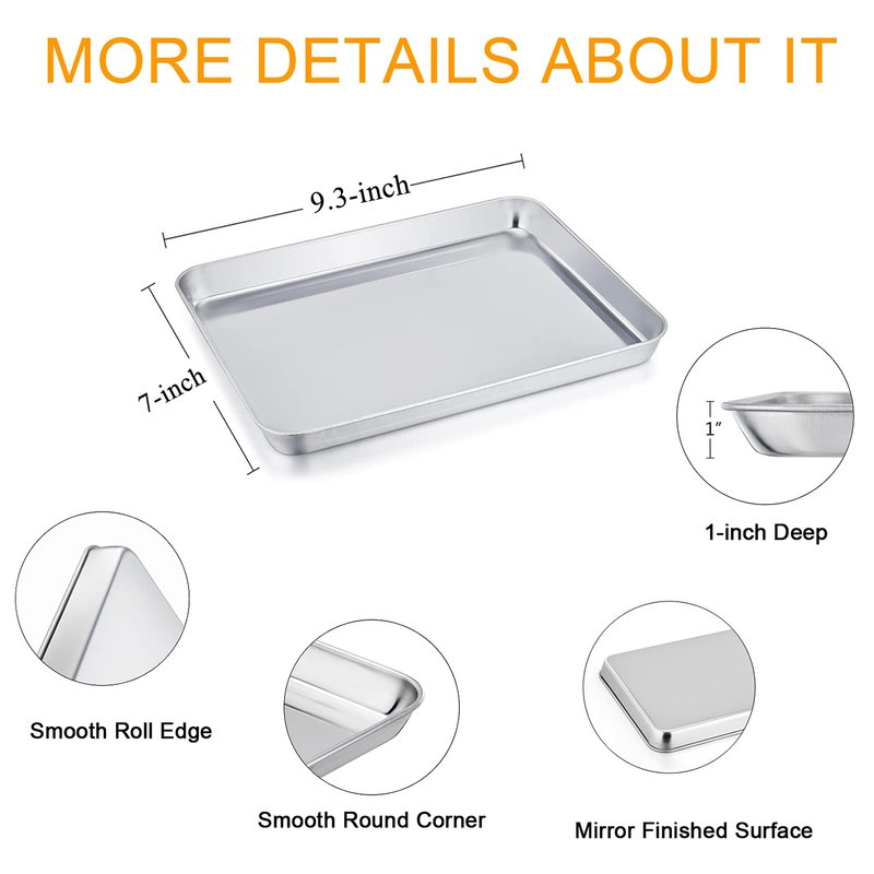 - Dishwasher & Oven Safe: The small baking trays are dishwasher safe to save your time and labor after using, Also convenient to clean up in hand-wash, Compact size perfectly fit in most regular home oven and mini oven for baking and roasting
