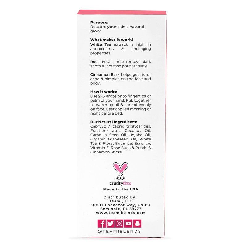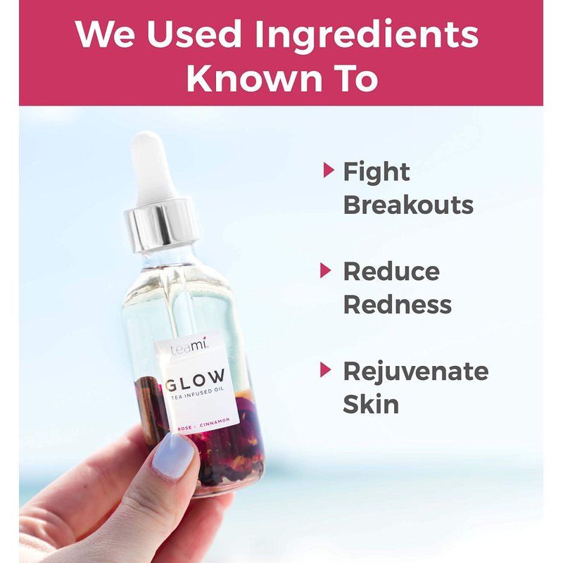 Our Teami Glow Facial Oil is infused with rose petals, cinnamon bark and jojoba oil to provide skin with a dewy hydration and natural glow. Oils are a pure form of moisturizer that seamlessly absorb into the deeper layers of your skin leaving it soft, nourished and radiant! Perfect for all skin types.