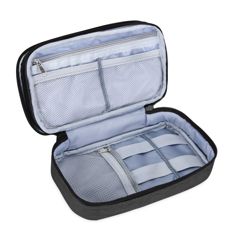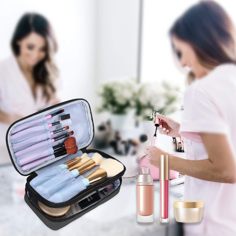 - WELL CONSTRUCTION: The second section is enough roomy to carry your small travel makeup supplies, like Pressed powder, eye shadow pallette, lipstick, eyeliners, mascara, blush and more.