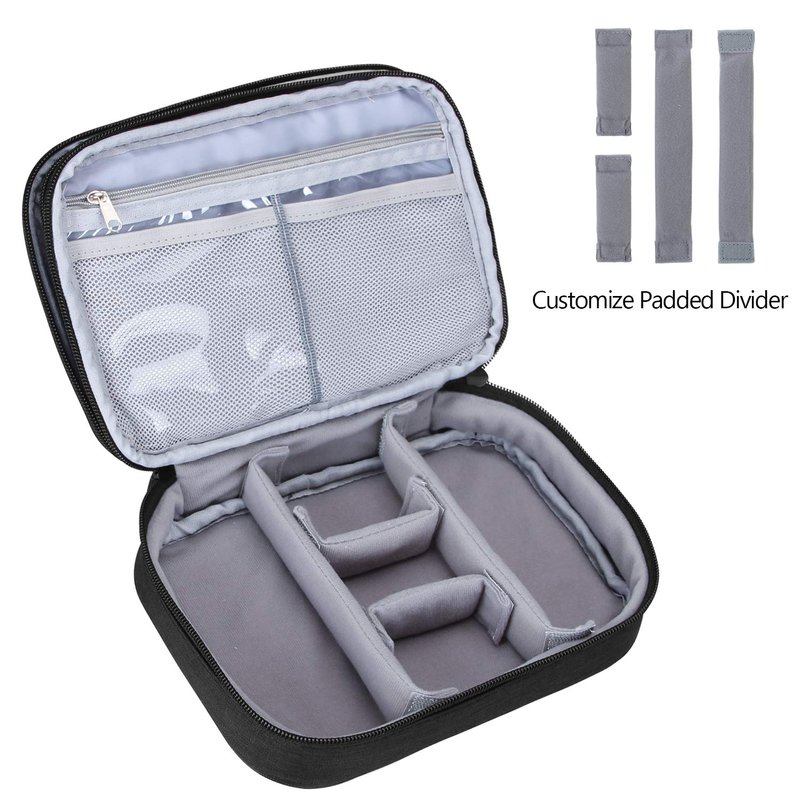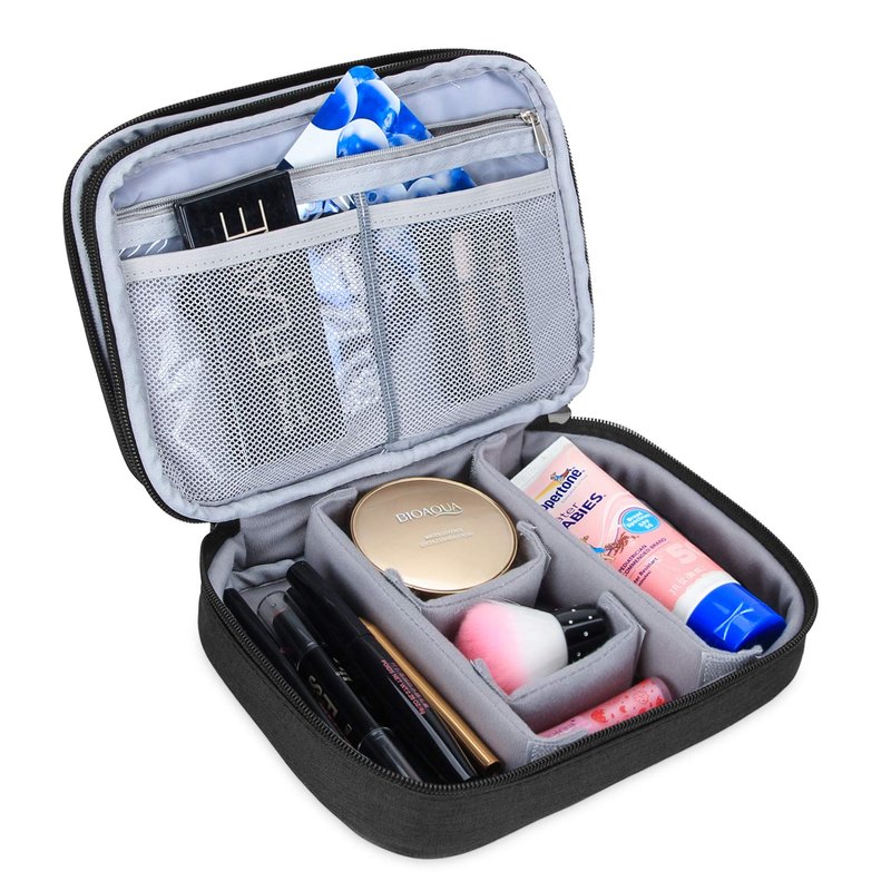 - COMPACT AND WELL ORGANIZED: The internal padded dividers is adjustable to meet your various needs, enough roomy to carry your small travel makeup supplies, like Pressed powder, eye shadow pallette, lipstick, eyeliners, mascara, blush and more.