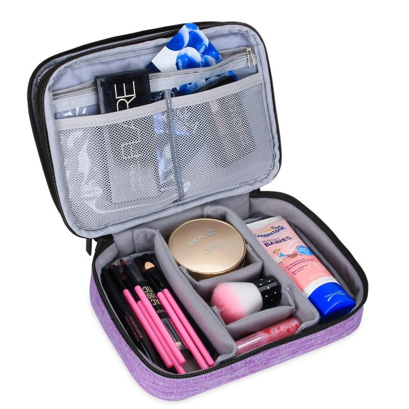 - COMPACT AND WELL ORGANIZED: The internal padded dividers is adjustable to meet your various needs, enough roomy to carry your small travel makeup supplies, like Pressed powder, eye shadow pallette, lipstick, eyeliners, mascara, blush and more.