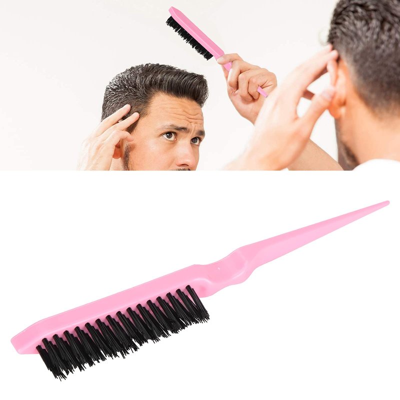 Teasing Brush, Teasing Hair Brush, Plastic Handle Teasing Comb,Travel Portable Nylon Hair Beard Brush Styling Tool for Hair Sectioning for Edge Control Backcombing (Pink)