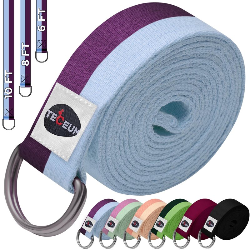 TECEUM [New 2022] Yoga Strap – 100% Cotton – 6 ft 8 ft 10 ft (6+ Colors) – Adjustable Non-Slip Belt for Daily Yoga, Pilates, Stretching, Physical Therapy, Fitness & Home Workout – for All Levels