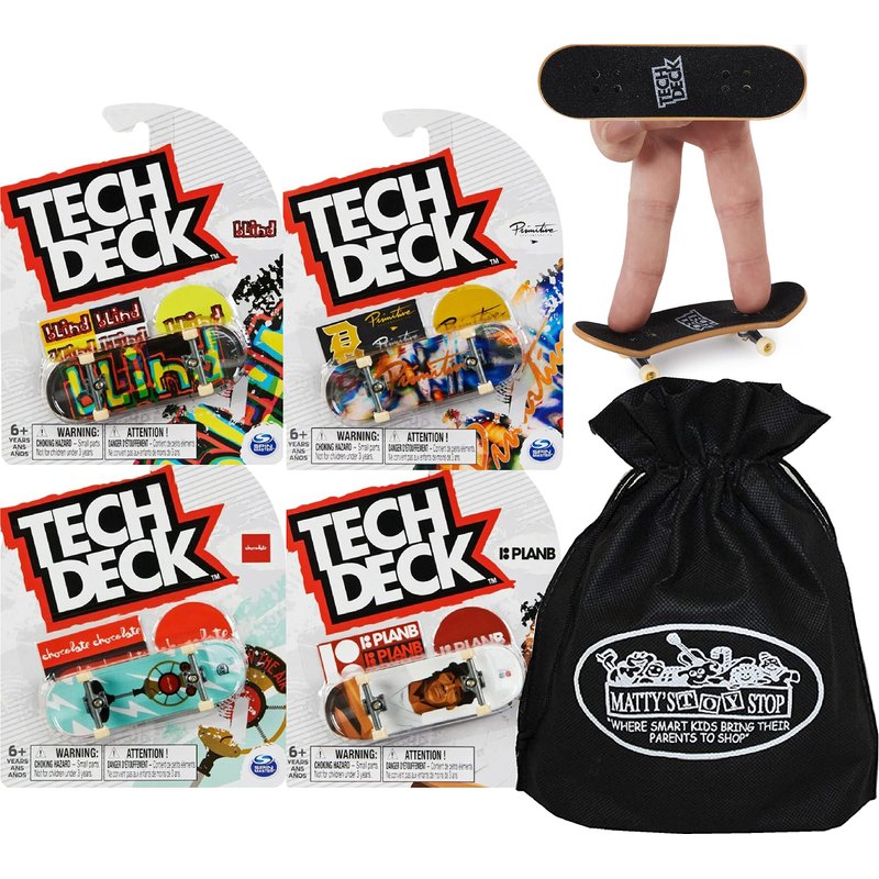 - Gift Set Party Bundle Includes 4 Different 96mm Tech Deck Fingerboards and Bonus "Matty's Toy Stop" Storage Bag!