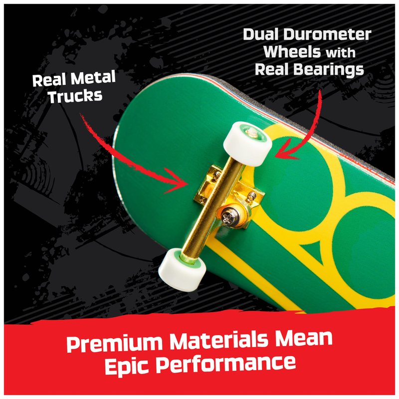 - PRO SERIES BOARD: Professional grade finger skateboard with real 5 plywood deck, dual durometer wheels with bearings, polished metal trucks and foam pattern grip. Are you ready to go Pro?