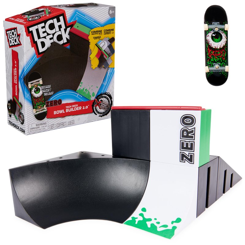 - The Bowl Builder 2.0 ramp set also includes a faithful Tech Deck Fingerboard from Zero, which is only available in this set - so everyone can show their tricks directly on a cool fingerboard