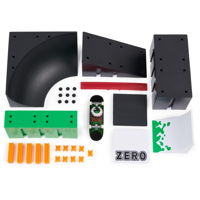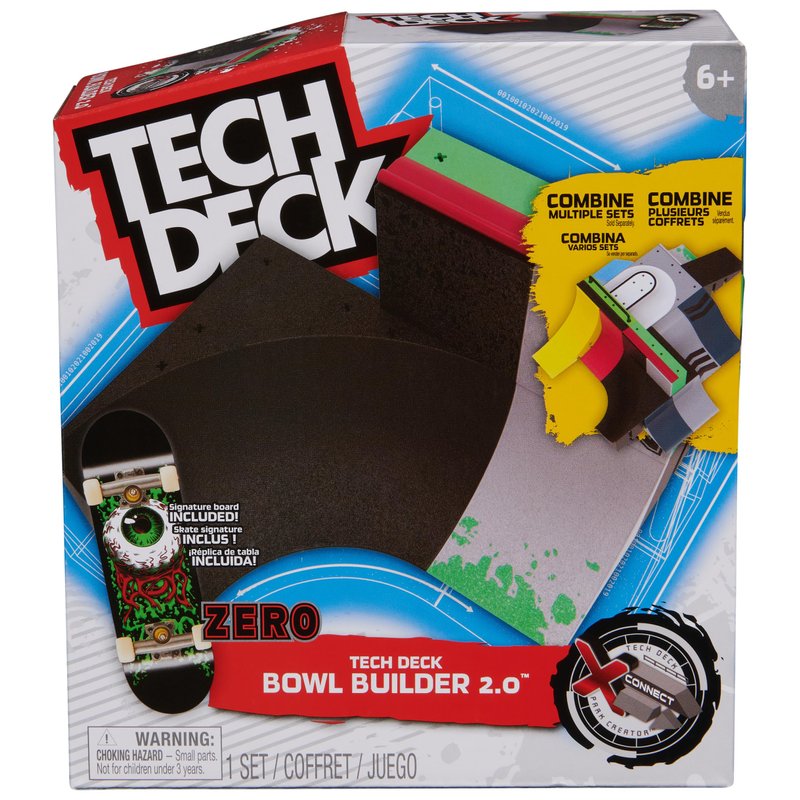 - Contents: 1 Tech Deck Fingerboard from Zero, 1 complete X-Connect Bowl Builder 2.0 set with accessories, 1 assembly instructions (English language not guaranteed)