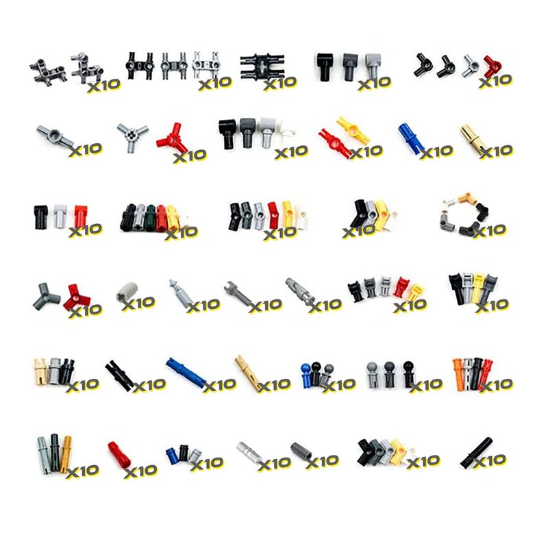 - Comprehensive Package: The package includes a wide variety of parts such as Technical Pin Connector Perpendicular, Axle and Pin Connector Hub, Axle and Pin Connector Angled (#1, #2, #3, #4, #5, #6), Axle and Pin Connector Triple, Steering CV Joint/Axle, Axle 1L with Tow Ball, Pin with Friction Ridges, Pin 3/4, Pin with Friction Ridges, and Pin 3L with Friction Ridges.