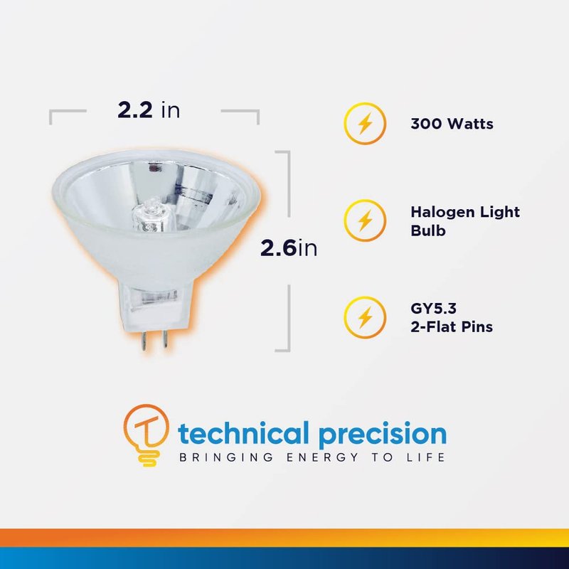 Technical Precision 300W 120V Projector Bulb Replacement for Eversmart Carousel 600h MR16 Halogen Lamp - GY5.3 2 Flat Pins - 3350K - 1 Pack