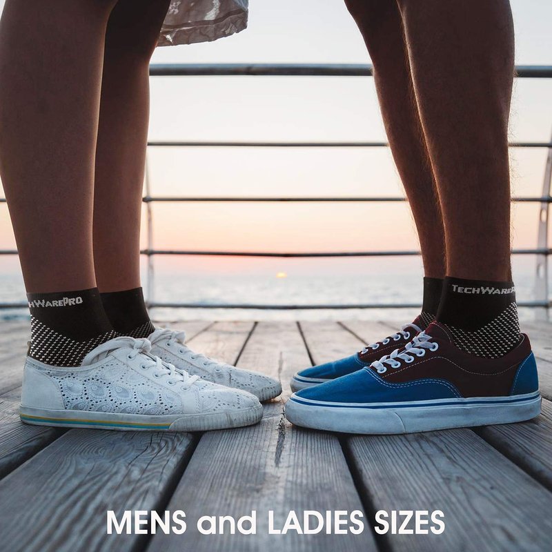 - YOUR FEET / ANKLES DESERVE TO BE HAPPY >> MEASURE BOTH YOUR SHOE SIZE & ANKLE CIRCUMFERENCE. Refer to SIZE CHART before ORDERING to ensure the BEST FIT. 4 Sizes Small, Medium, Large, Xlarge Unisex Mens & Ladies. QUARTER LENGTH socks - 80% DURABLE Nylon & 20% Spandex for tough construction and comfort. 1 Pair