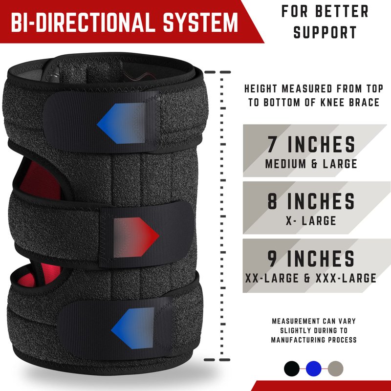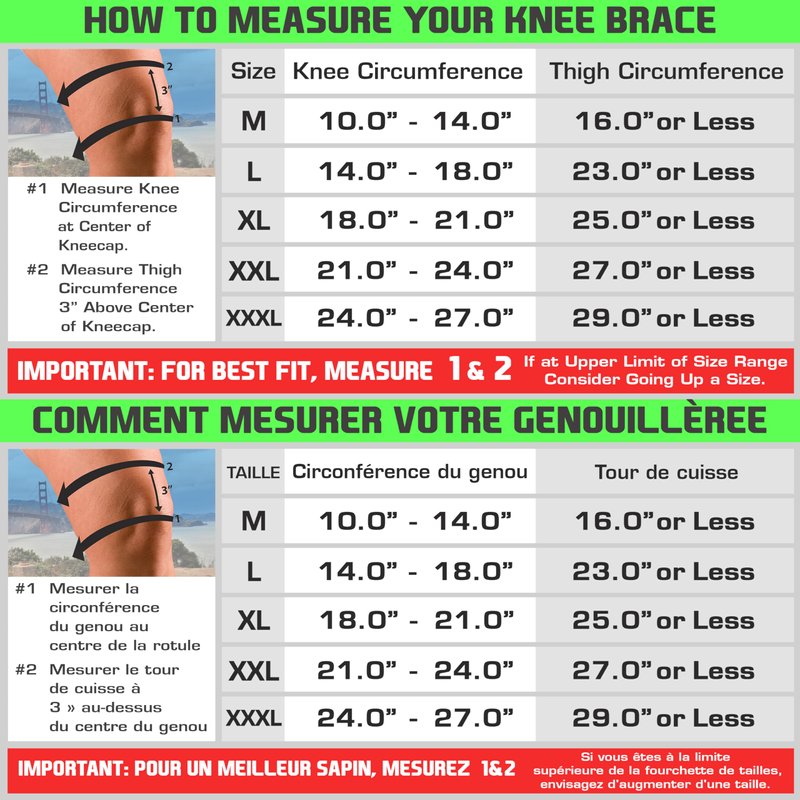 EASY TO USE - Choose from 4 sizes. MEASURE AROUND THE KNEE CAP. MEDIUM 10" - 14”, LARGE 14” - 18”, X-LARGE 18” - 21”, XX-LARGE 21” - 24” AND XXX-LARGE 24” - 27” for men and women