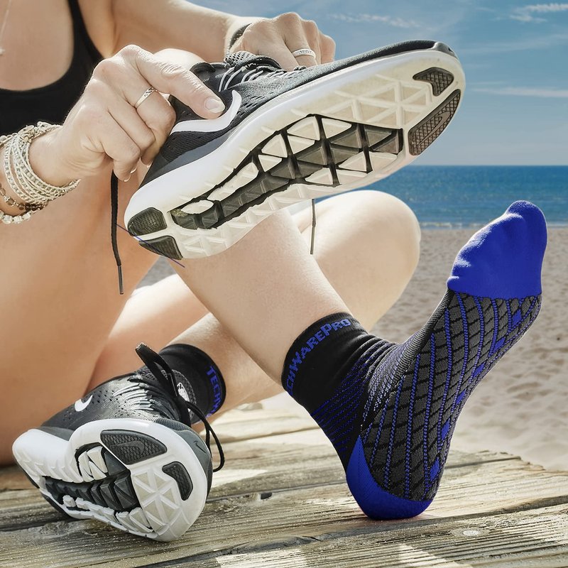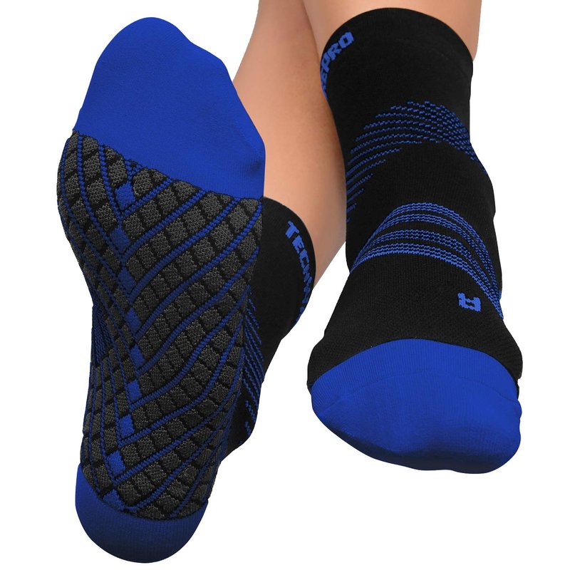 TechWare Pro Plantar Fasciitis Socks – Therapy Grade Cushion Ankle Compression Socks Women & Men. Ankle Brace & Arch Support (Blk/Blu Small)