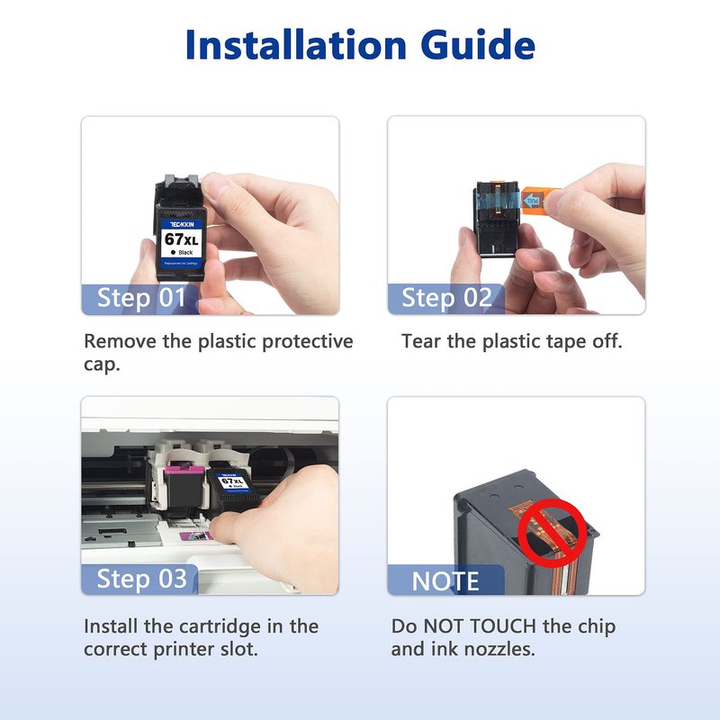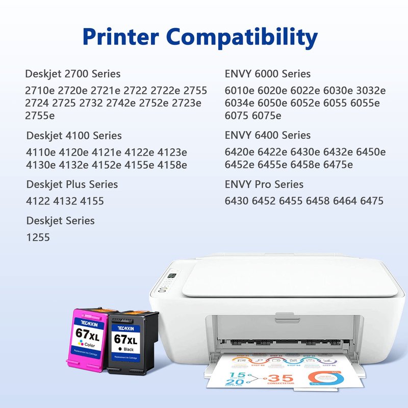 - All TECKKIN 67XL for hp ink 67 are filled with premium ink and equipped with the latest upgrade intelligent chips, which is matched with advanced production technology and strict quality inspection process to ensure the high printing quality of each 67XL ink cartridge. Bring you clear print text and bright vibrant images!