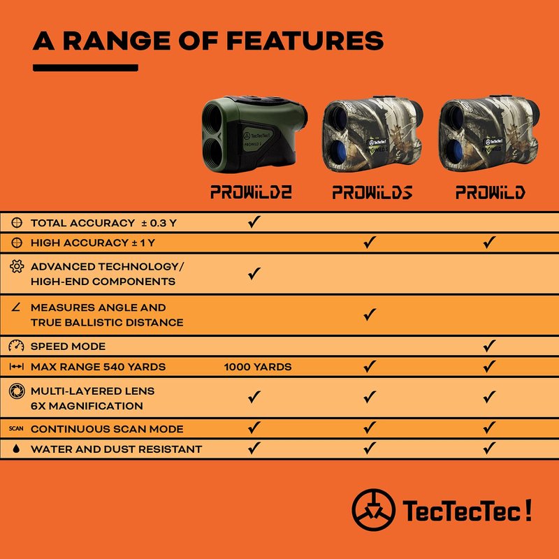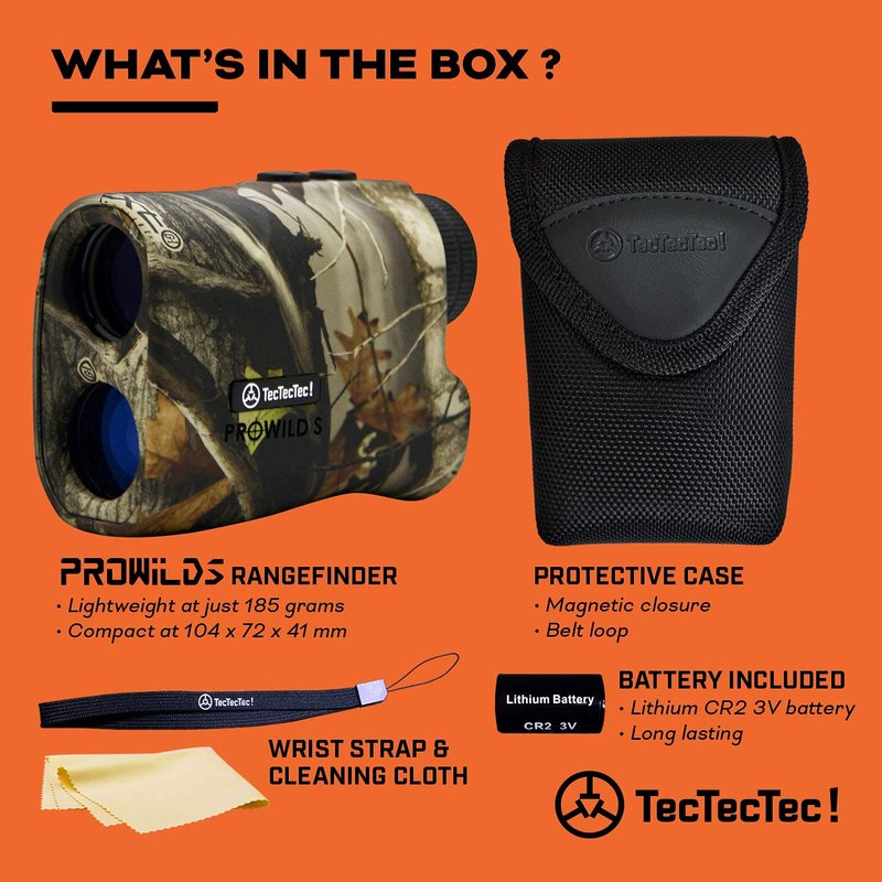 TecTecTec ProWild S Hunting Rangefinder has been crafted with art and convenience in mind offering an ergonomic experience. Designed to fulfill your core distance measurement needs to maximize your game, together with advanced pin sensor technology ensuring reliable performance for golfing, hunting, bowhunting, and other professional application.