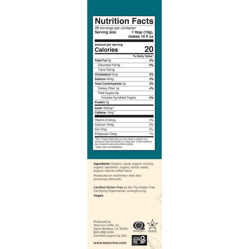 - NATURALLY CAFFEINE FREE - Experience an energy boost from nutrients, not stimulants. Perfect any time of day or night because it won’t interfere with sleep. Sugar-free Teeccino is a treat for the whole family.