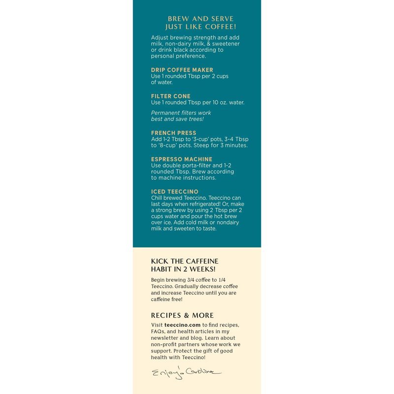 - BREW TEECCINO LIKE COFFEE - Our all-purpose-grind brews in any kind of coffee maker. Perfect for a cappuccino or latte, delicious hot or iced. Quit coffee by blending with Teeccino & gradually weaning off over 2 weeks.