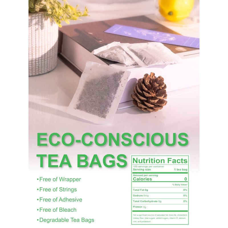 - [100 COUNT ECO-CONSCIOUS TEA BAGS] - Our premium tea bags are made from non-GMO plant fiber, and tea bags are unbleached and compostable. No string and no tag. No extra waste - just healthy & delicious tea!