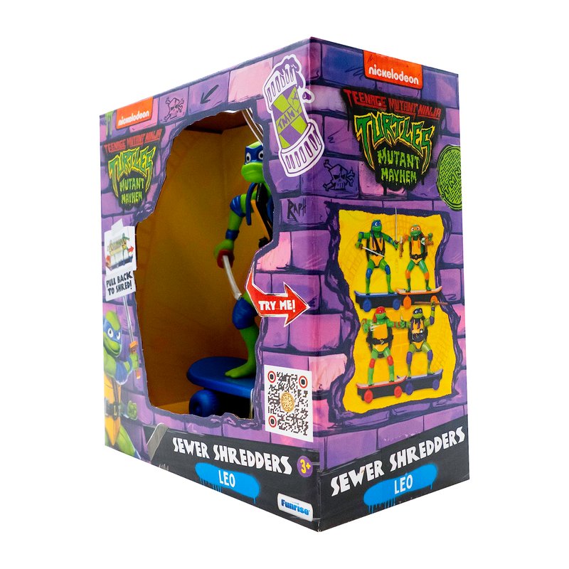 - Pull back toy and watch Leonardo ride. Initiate battle mode by pressing Turtles’ half shell.