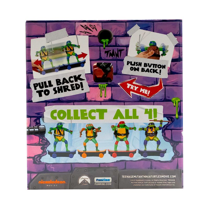 - Shred and battle with this 5” movie-inspired TMNT skate toy.