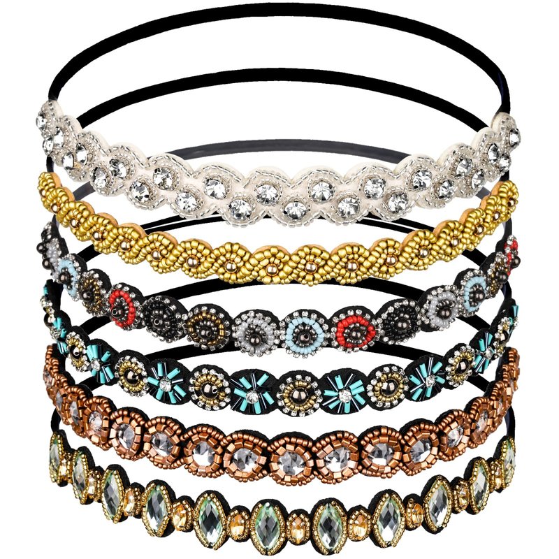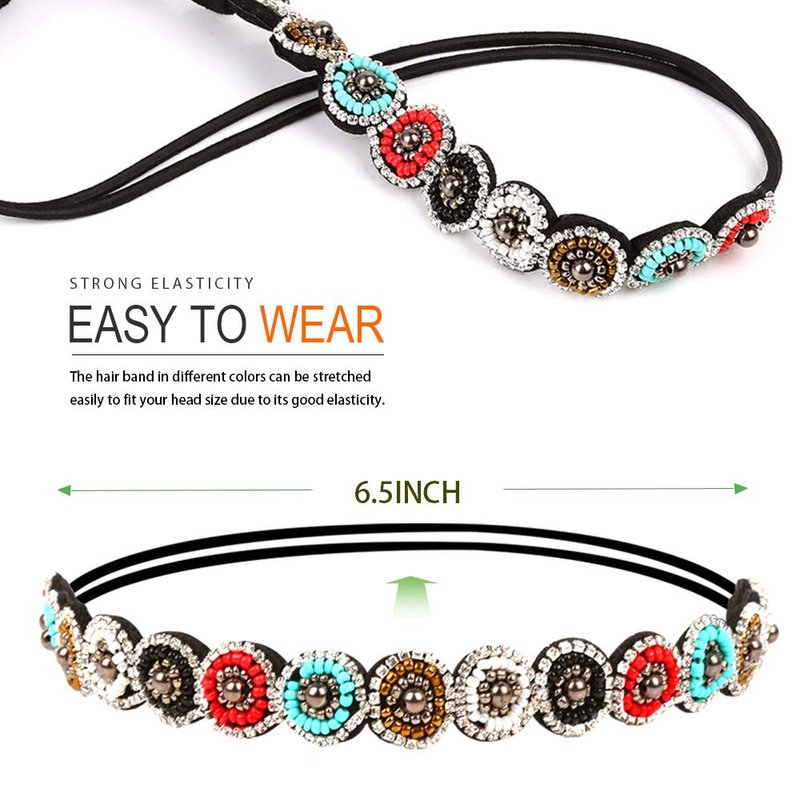 Teenitor 6pcs Rhinestone Beaded Headband, Elastic Jewelry Hair Bands for Lady Women Girl Hair Accessories 20-26.8'' Multicolor