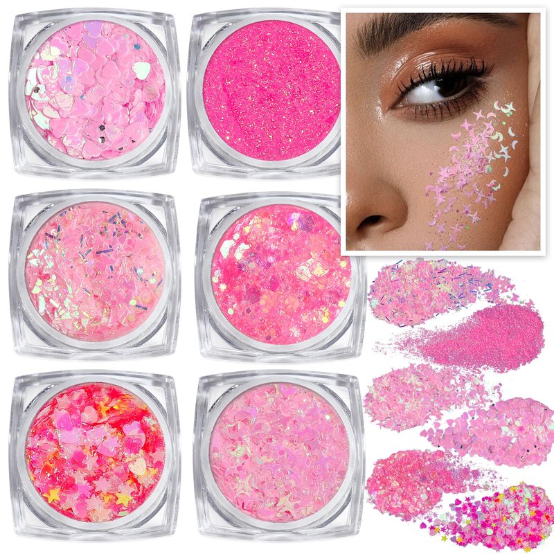 Pink Body Glitter Set. This body glitter gel set included very fine glitter, hexagon glitter, the stars and the moon glitter, butterflies and love heart glitter, shining shredded paper glitter, four-angle star glitter. 6 different shapes of sequins glitter gel to meet your different needs. Overall, the Teenitor Face Glitter Gel is a must-have for anyone looking to add a touch of sparkle to their festival or party look. It's easy to use, long-lasting, and sure to make you stand out in the crowd.