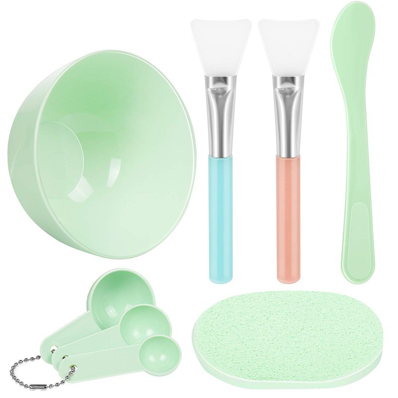 Teenitor Facial Mask Mixing Bowl Set, DIY Facemask Mixing Tool Kit with Silicon Face Mask Brush Facial Mask Bowl Stick Spatula Gauges Puff, Pack of 8, Green