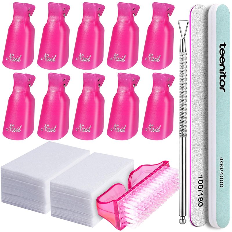 - New At-home gel remover kit come to life: When it comes to gel nails, removal is often the hardest part of all. Need to get your gel polish off and don't have the time or patience to head to the salon? We've been there, these cute tools include everything you need to soak, dissolve, and remove gel polish-coarse sand file, handle grip nail brushes, nail remover pads, nail clips, Cuticle Pusher& buffer block