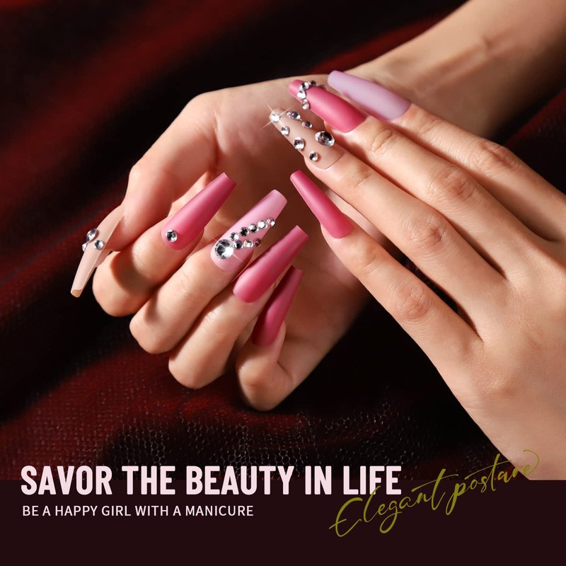 - 12 Sizes Long Coffin Press On Nail Fit More Perfectly: 12 sizes long coffin press on nails(NO.0-NO.11), others only 10 size false nails for you. 2pcs each of model press on nails long with two more sizes than other brands, it can fit your own nails more perfectly and give you salon-like effect