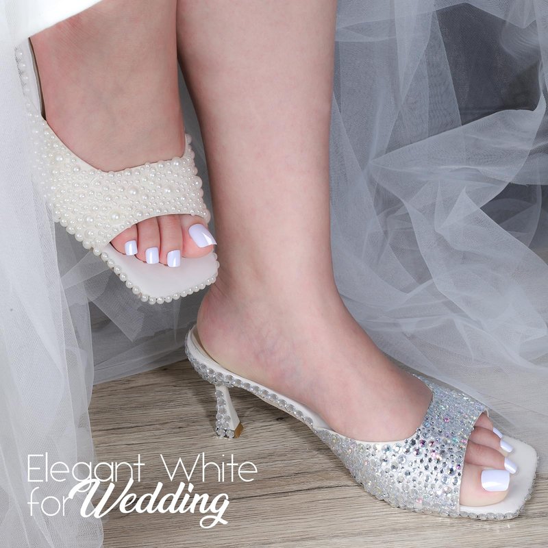 - Solid White Toenails Press On: These short square toe nail tips are white color, compare with natural color, Teenitor white toe nails won’t too transparent, perfectly full cover you natural toe nail. Not gel nail polish needs but looks natural and elegant, suitable for open toed shoes in wedding